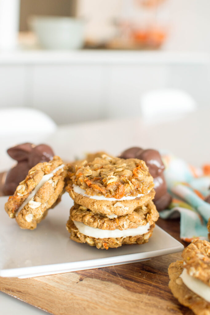 I’ve had Easter on my mind a lot recently, so I decided to whip-up something extra special: Oatmeal Carrot Cookie Sandwiches. I’m sharing the full recipe below, and I am SO eager for you to try them out!